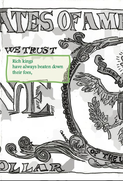 Jacob Esau is a writer of Syrian descent who’ll soon be accused of “INFILTRATING YOUR COMMUNITY” as he goes— (“Hey! Citizens! My whole family and I are citizens now! Hands off me, motherfu— Current papers? What do you mean? What—what papers? No, I don’t carry pr— Oof! You jackboot thugs! Did you seriously just kick me to the ground?! Hey. Look. Listen. I didn’t mean it. Why don’t we both just calm down here? Maybe you didn’t hear me? I’m a citiz— In where? That van? Yeah, okay, no. Now I know you’re joking. Where the hell do you think you’re gonna take us anyway! Hey. No. Don’t you dare point that taser at—”) —meandering between the middle and eastern regions of Tennessee, which are the two beautiful places he considers home. As a Mideast Tennessyrian, he envisions the coming day when he will be imprisoned in some unnamed totalitarian state while writing and illustrating a weekly comic strip. He will publish these comics on his jail cell walls with just an audience of fellow inmates and prison guards to guffaw at his life’s work, their barks of elation only drowned out by the cracks of rifle butts and night sticks against his skull. Until that torturous, fortuitous day comes to pass, he will begrudgingly settle for selling little dramatic scenes told in the form of comic sonnet zines, just like the one you are holding in your hands now. To read more and to offer your financial support for what may end up being his future legal defense fund (hahaha?), consider subscribing and sparing a dollar or two, won’t you? Read more at www.jacobesau.com.