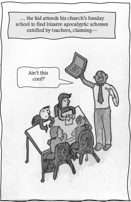 Already haunted by AI bad dreams, the kid attends his church’s Sunday school to find bizarre apocalyptic schemes extolled by teachers, claiming—