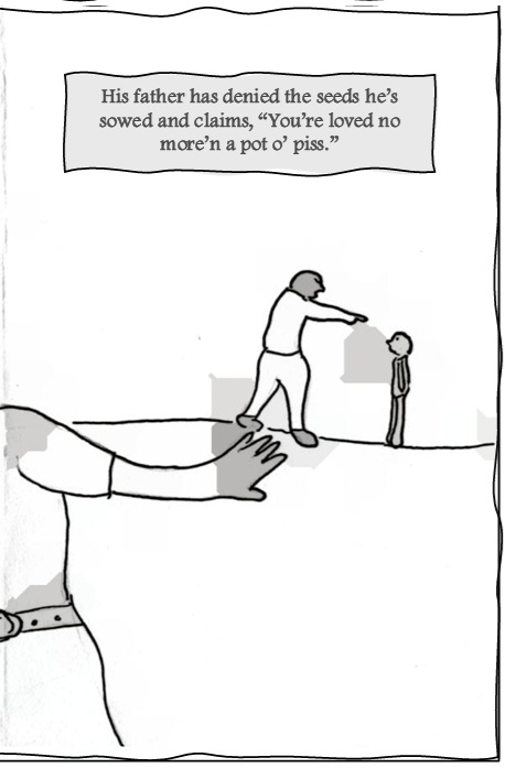 Jacob Esau is a writer of Syrian descent who’ll soon be accused of “INFILTRATING YOUR COMMUNITY” as he goes— (“Hey! Citizens! My whole family and I are citizens now! Hands off me, motherfu— Current papers? What do you mean? What—what papers? No, I don’t carry pr— Oof! You jackboot thugs! Did you seriously just kick me to the ground?! Hey. Look. Listen. I didn’t mean it. Why don’t we both just calm down here? Maybe you didn’t hear me? I’m a citiz— In where? That van? Yeah, okay, no. Now I know you’re joking. Where the hell do you think you’re gonna take us anyway! Hey. No. Don’t you dare point that gun at—”) —meandering between the middle and eastern regions of Tennessee, which are the two beautiful places he considers home. As a Mideast Tennessyrian, he envisions the coming day when he will be imprisoned in some unnamed totalitarian state while writing and illustrating a weekly comic strip. He will publish these comics on his jail cell walls with just an audience of fellow inmates and prison guards to guffaw at his life’s work, their barks of elation only drowned out by the cracks of rifle butts and night sticks against his skull. Until that torturous, fortuitous day comes to pass, he will begrudgingly settle for selling little dramatic scenes told in the form of comic sonnet zines, just like the one you are holding in your hands now. To read more and to offer your financial support for what may end up being his future legal defense fund (hahaha?), consider subscribing and sparing a dollar or two, won’t you? Read more at www.jacobesau.com.