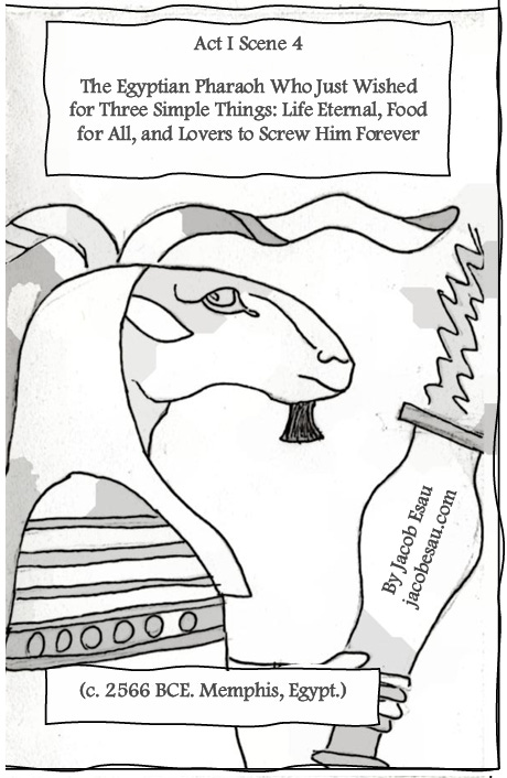 The Egyptian Pharaoh Who Just Wished for Three Simple Things: Life Eternal, Food for All, and Lovers to Screw Him Forever (c. 2566 BCE. Memphis, Egypt.)