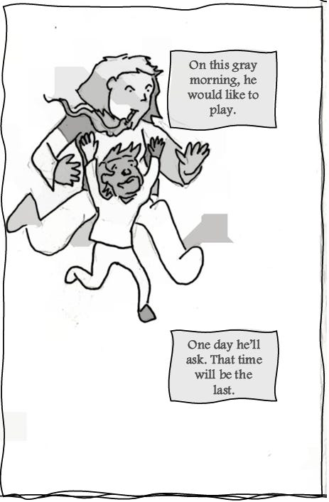 Jacob Esau is a writer of Syrian descent who’ll soon be accused of “INFILTRATING YOUR COMMUNITY” as he goes— (“Hey! Citizens! My family and I are citizens now! Hands off me, motherfu— Current papers? What do you mean? What—what papers? No, I don’t carry pr— Oof! You jackboot thugs! Did you seriously just kick me to the ground?! Hey. Look. Listen. I didn’t mean it. Why don’t we both just calm down here? Maybe you didn’t hear me? I’m a citiz— In where? That van? Yeah, okay, no. Now I know you’re joking. Where the hell do you think you’re gonna take us anyway! Hey. No. Don’t you dare point that gun at—”) —meandering between the middle and eastern regions of Tennessee, which are the two beautiful places he considers home. As a Mideast Tennessyrian, he envisions the coming day when he will be imprisoned in some unnamed totalitarian state while writing and illustrating a weekly comic strip. He will publish these comics on his jail cell walls with just an audience of fellow inmates and prison guards to guffaw at his life’s work, their barks of elation only drowned out by the cracks of rifle butts and night sticks against his skull. Until that torturous, fortuitous day comes to pass, he will begrudgingly settle for selling little dramatic scenes told in the form of comic sonnet zines, just like the one you are holding in your hands now. To read more and to offer your financial support for what may end up being his future legal defense fund (hahaha?), consider subscribing and sparing a dollar or two, won’t you?