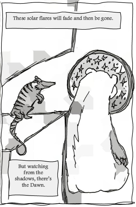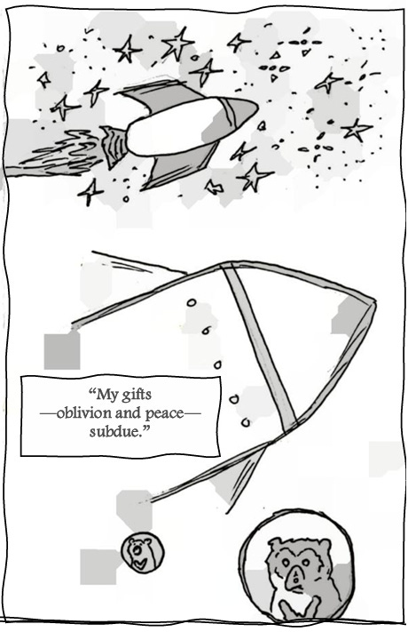 Scene 8: The Sun Bear’s Tale (A fable from the predawn of Time. Aboard the spaceship.)