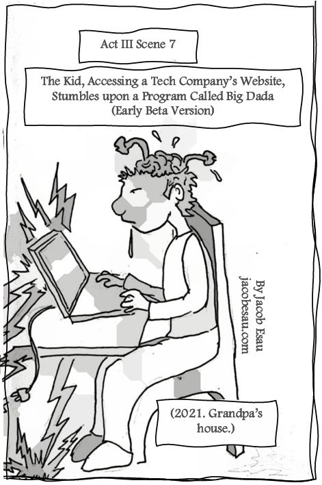 Scene 7: The Kid Accessing a Tech Company’s Website Stumbles upon Big Dada (Early Beta Version) (2021. Grandpa’s house.)