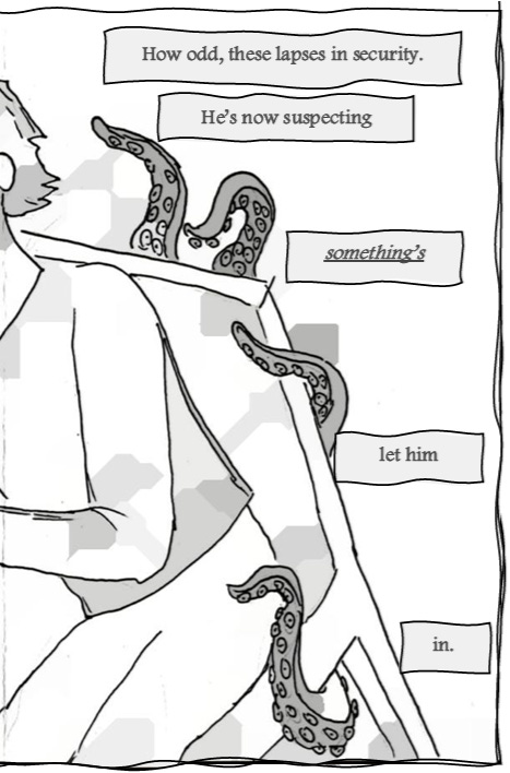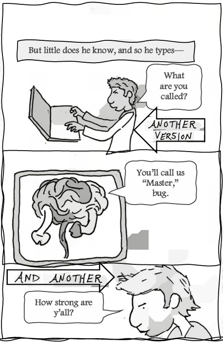 Jacob Esau is a writer of Syrian descent who’ll soon be accused of “INFILTRATING YOUR COMMUNITY” as he goes— (“Hey! Citizens! My family and I are citizens now! Hands off me, motherfu— Current papers? What do you mean? What—what papers? No, I don’t carry pr— Oof! You jackboot thugs! Did you seriously just kick me to the ground?! Hey. Look. Listen. I didn’t mean it. Why don’t we both just calm down here? Maybe you didn’t hear me? I’m a citiz— In where? That van? Yeah, okay, no. Now I know you’re joking. Where the hell do you think you’re gonna take us anyway! Hey. No. Don’t you dare point that gun at—”) —meandering between the middle and eastern regions of Tennessee, which are the two beautiful places he considers home. As a Mideast Tennessyrian, he envisions the coming day when he will be imprisoned in some unnamed totalitarian state while writing and illustrating a weekly comic strip. He will publish these comics on his jail cell walls with just an audience of fellow inmates and prison guards to guffaw at his life’s work, their barks of elation only drowned out by the cracks of rifle butts and night sticks against his skull. Until that torturous, fortuitous day comes to pass, he will begrudgingly settle for selling little dramatic scenes told in the form of comic sonnet zines, just like the one you are holding in your hands now. To read more and to offer your financial support for what may end up being his future legal defense fund* (hahaha?), consider subscribing and sparing a dollar or two, won’t you? *or his funeral